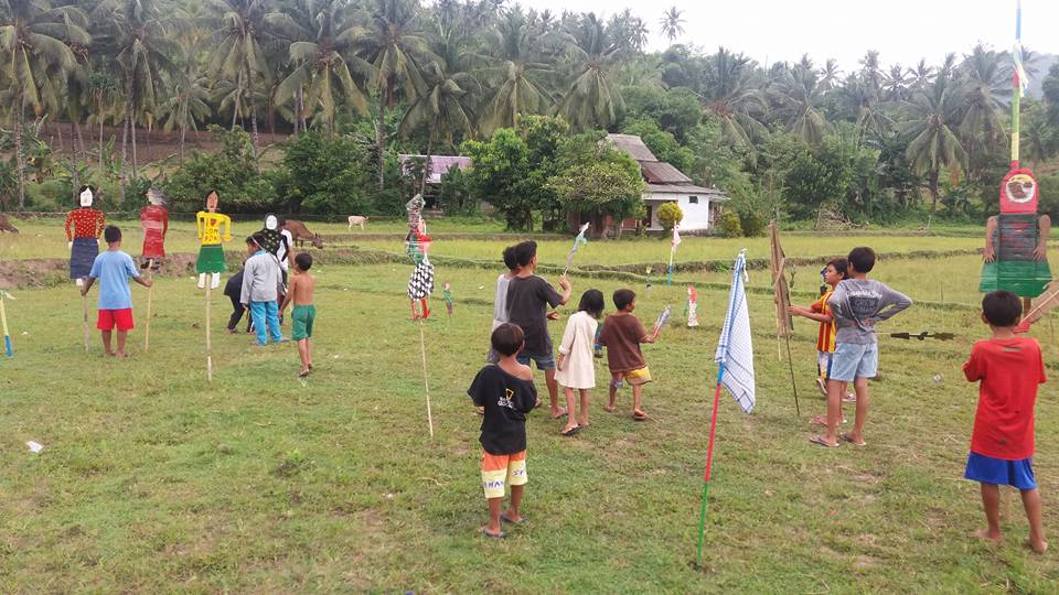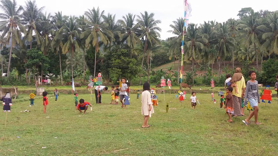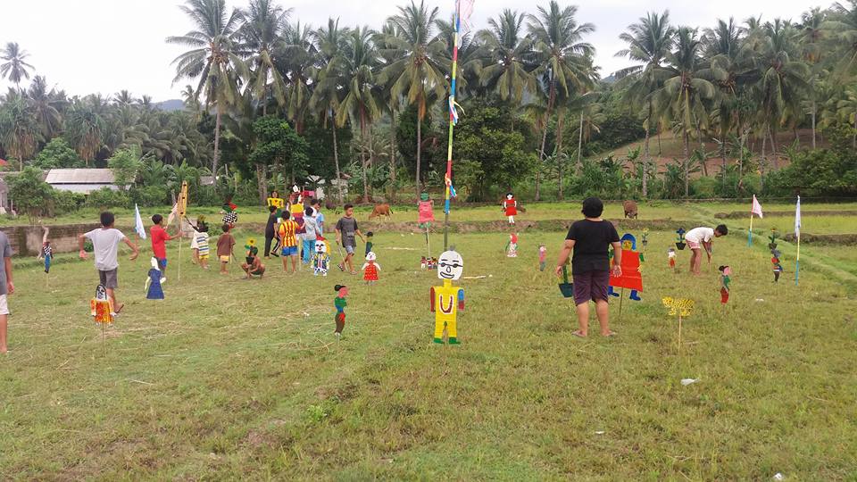 Saya menjadi sangat tertarik dengan karya ini ketika anak-anak di dusun tersebut begitu antusias melihat wayang-wayang yang tersusun acak di tengah sawah yang baru saja dipanen. Acak, karena merekalah yang menancapkan wayang-wayang itu ke tanah. Saat semua wayang telah tertancap dan berdiri indah di sebagian besar area tanah lapang itu, saya melihat mereka berlari dan menari dari wayang yang satu ke wayang yang lain sementara ibu-ibu berkumpul di sisi sawah memperhatikan anak-anaknya bermain, kemudian mereka saling tertawa lepas.
