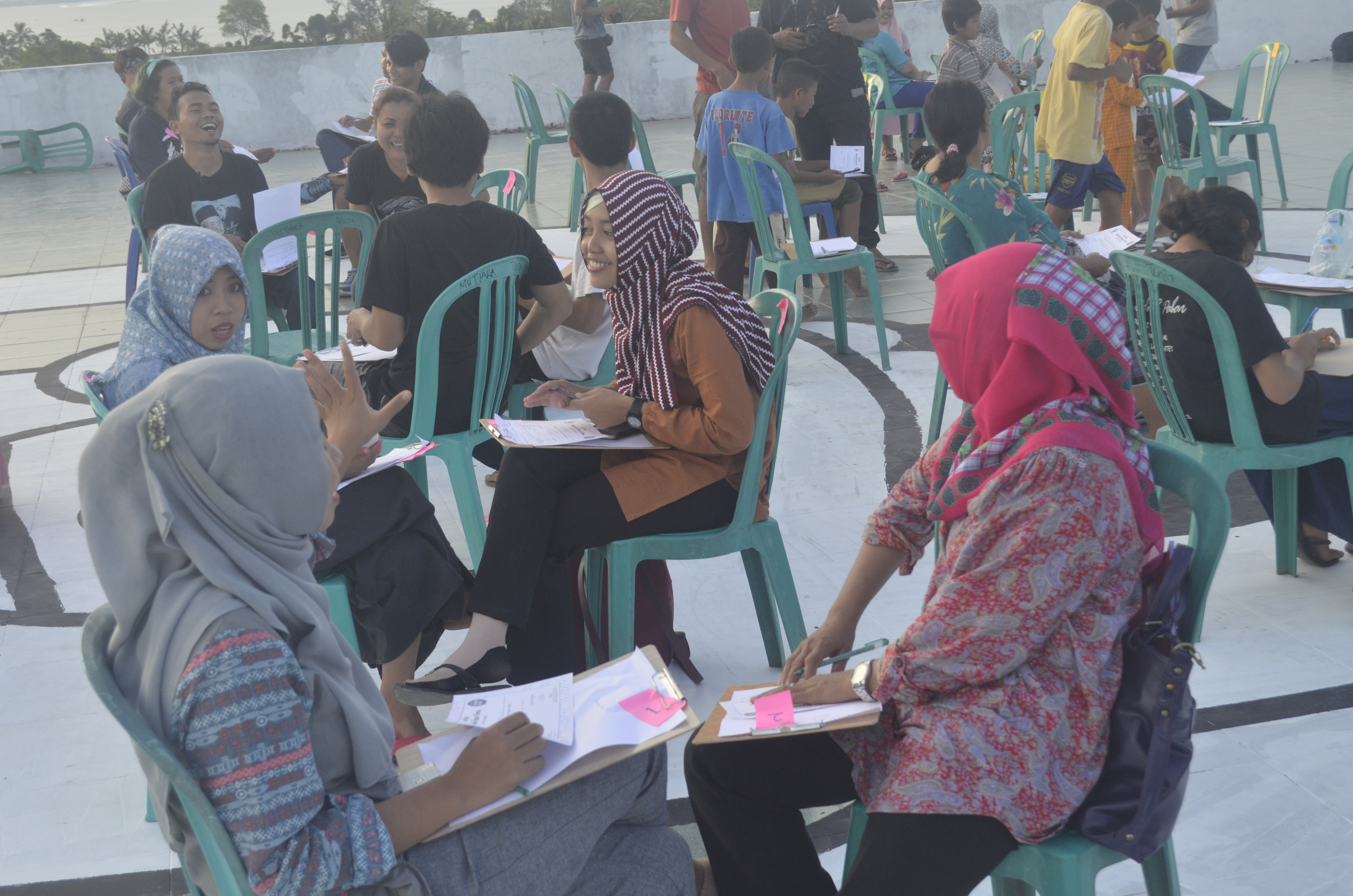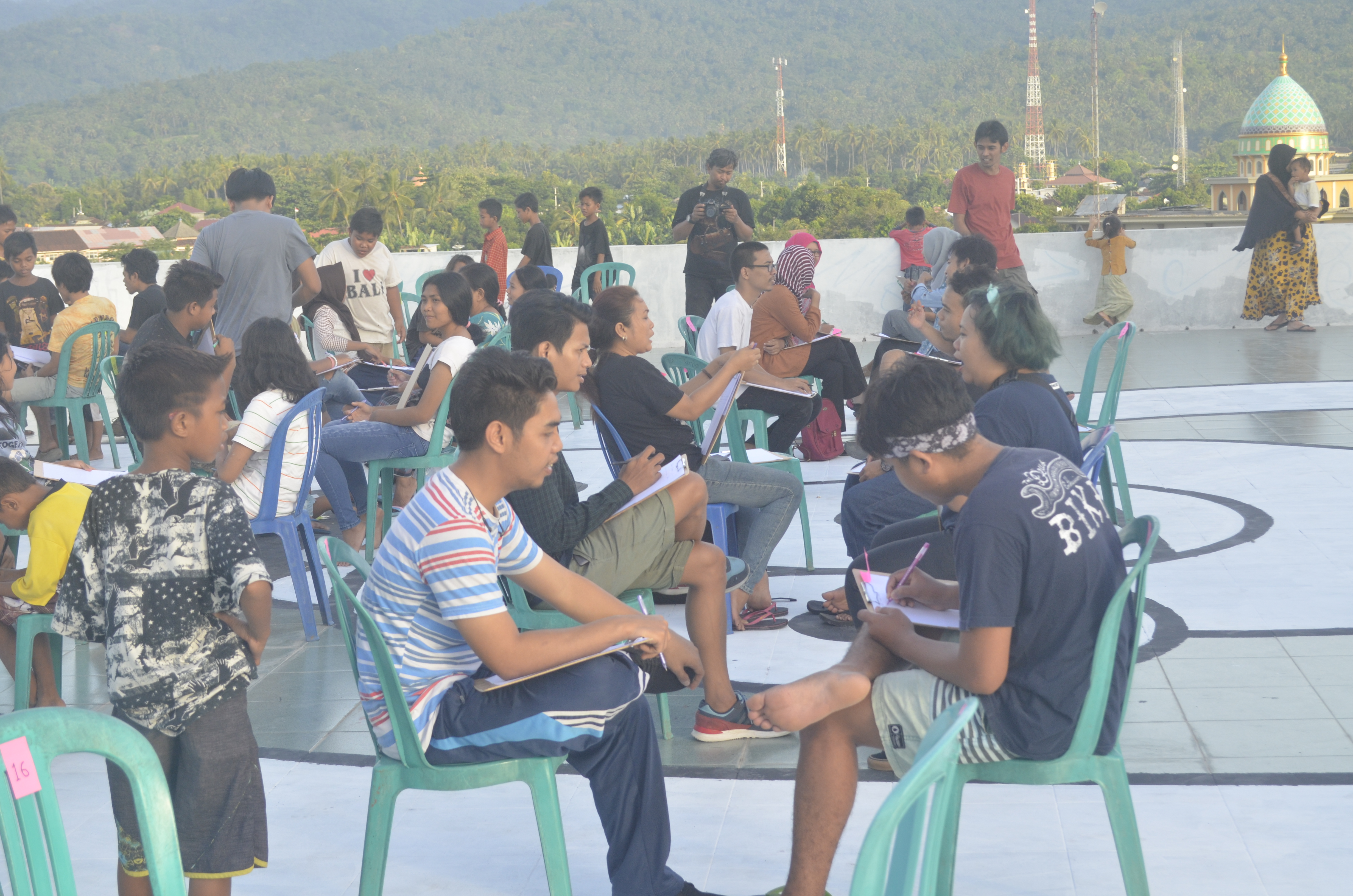 31 Maret 2017. Di hari kedua saya di Lombok, saya mulai mengikuti rangkaian kegiatan Bangsal Menggawe 2017 yang tersisa sebelum acara puncaknya yang dilaksanakan pada tanggal 2 April 2017. Siang itu, ada kegiatan diskusi antara teman-teman dari Serrum (sebuah kolektif seni yang aktif di Jakarta) dan guru-guru sekolah yang ada di Kecamatan Pemenang. Sore harinya, ada presentasi karya kolaboratif dari seniman Citra Sasmita dan warga Dusun Karang Subagan Daya. Beruntung, dua kegiatan itu dilaksanakan pada waktu yang berbeda sehingga saya dapat menyaksikan jalannya kedua kegiatan tersebut.