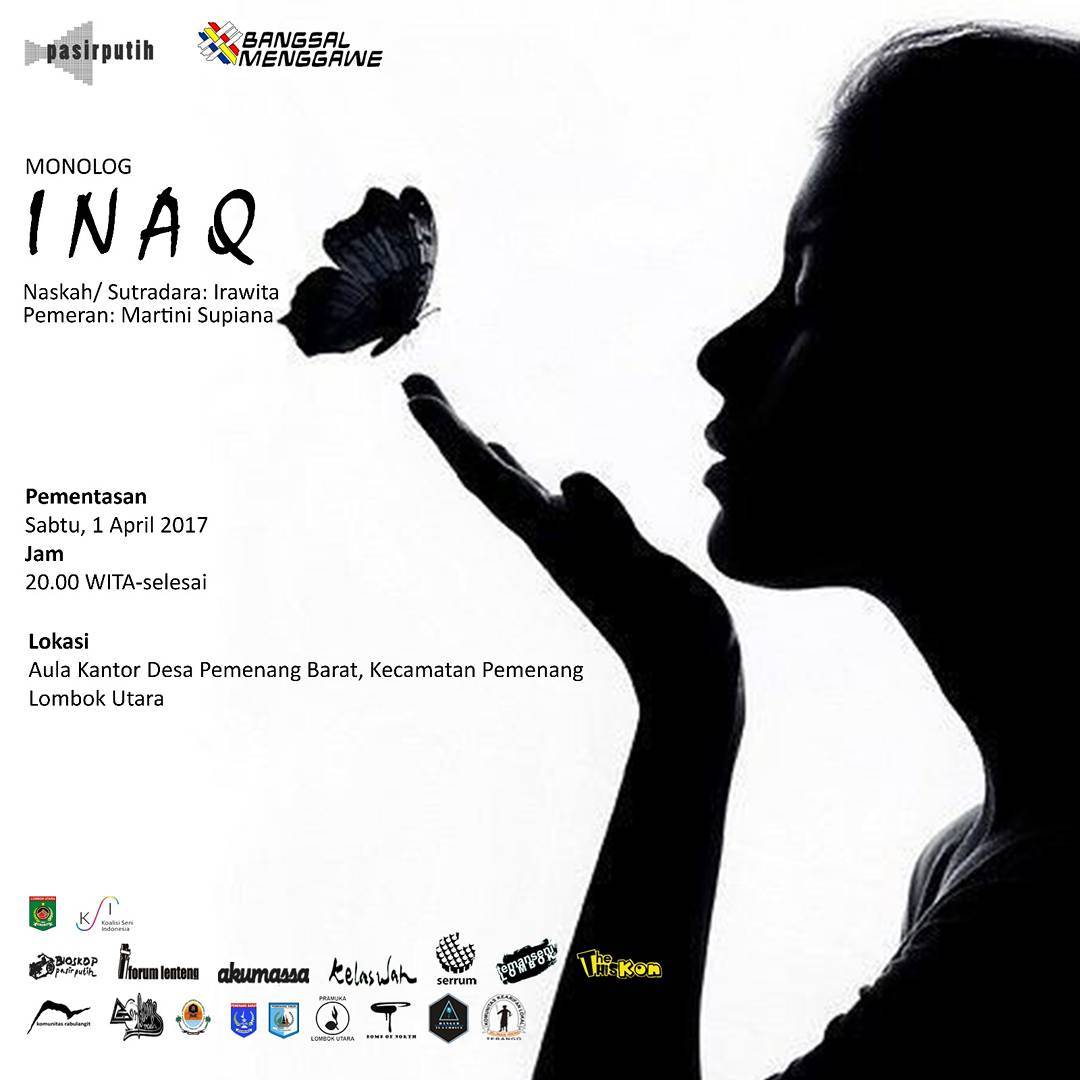 Perjalanan saya menikmati karya para seniman dalam rangakain Bangsal Menggawe 2017 belum selesai. Masih ada satu karya lagi yang berhasil menggiring saya ke kantor Desa Pemenang Barat, yakni monolog berjudul Inaq, karya kolaborasi seniman teater Irawita dengan salah seorang warga, Martini Supiana.