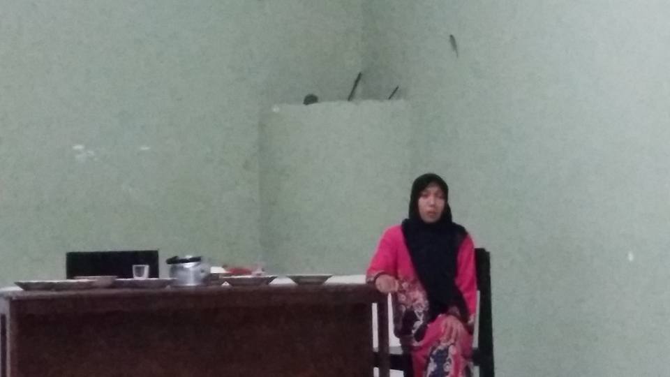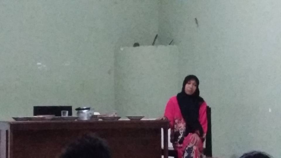 Sejujurnya, kondisi malam itu membuat saya khawatir. Acara akan segera dimulai sementara hujan justru turun malu-malu, seolah ingin ikut menyaksikan teater monolog itu. Untungnya, kekhawatiran saya tidak berlarut-larut karena penonton datang dengan jauh lebih berani dari si hujan. Satu per satu, bapak-ibu, anak-anak, muda-mudi, datang dan mulai memenuhi ruangan kantor desa. Seketika ruangan penuh dengan gerombolan manusia. Beberapa orang mengambil posisi di luar ruangan, mengintip ke dalam dari balik jendela. Meskipun melihat dari sela-sela jendela, saya perhatikan, itu tidak mengurangi konsentrasi mereka untuk mengikuti alur pertunjukan monolog Inaq.
