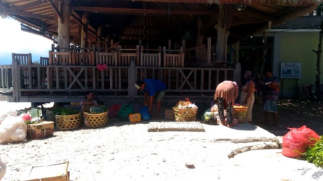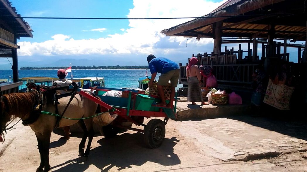 Biasanya, pedagang-pedagang sayuran atau bahan makanan akan tiba di pelabuhan Gili Meno sekitar pukul 10.00-an, naik kapal kelas 2 (jadwal pemberangkatan yang kedua). Sesampainya di pelabuhan Gili Meno, kelompok kuli pengangkut barang akan menurunkan barang dagangan dari boat (kapal) ke pinggir pantai atau langsung ke cidomo atau jaran dongol (cidomo pengangkut barang) carteran untuk diantar ke lokasi-lokasi yang memesan barang dagangan tersebut, seperti ke warung makan atau rumah warga. ***