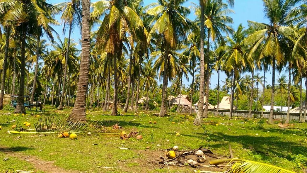 DI TENGAH PEMBANGUNAN pariwisata yang begitu pesat di Gili Meno, kita masih dapat menemukan kebun kelapa yang masih produktif meskipun tidak begitu dipelihara dengan baik. Pohon-pohon kelapa yang ada sekarang adalah pohon kelapa yang ditanami oleh orang-orang Gili Air sebelum pindah dan tinggal di Gili Meno. Dari cerita pengalaman Bi Ana dan Bu Sudi, sewaktu kecil mereka merasakan bagaimana dari Gili Air harus ke Gili Meno hanya untuk menyiram pohon-pohon kelapa ketika musim kering menggunakan kapal tanpa mesin dan harus menghadapi nyamuk-nyamuk yang menghuni Gili. Bi Ana dan Bu Sudi adalah warga yang pindah ke Gili Meno dari Gili Air pada awal tahun 1990-an bersama orang tuanya dan hidup menetap sampai saat ini. Bi Ana bercerita ketika panen, buah kelapa tersebut dijadikan kopra (buah kelapa yang dikeringkan—red) sebelum dikirim dan dijual ke mainland (pinggir—daratan pulau Lombok). Setelah pariwisata masuk ke Gili Meno pada tahun 1990-an, beberapa buah kelapa muda dijual sebagai minuman segar ke tamu-tamu yang datang, namun lebih banyak dijual ke pengepul.