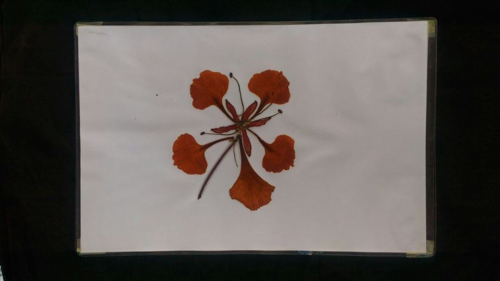 Selain oshibana, Afifah juga menyebut kata “herbarium”. Aku ingat, saat Afifah residensi di Lombok, ia dan teman-teman Pasirputih membuat proyek seni, salah satunya herbarium (lihat: Herbarium Gili Meno). Menurut Afifah, oshibana dan herbarium adalah dua hal yang sama, terutama dalam hal pembuatannya. Secara proses, keduanya menggunakan teknik pengepresan, kemudian ditempel pada kertas. Perbedaannya hanya pada kegunaannya. Jika oshibana berfungsi sebagai karya seni, herbarium justru berfungsi sebagai media penelitian. Namun, berdasarkan cerita Afifah, Zikri pernah menyebutkan bahwa herbarium sebagai media penelitian pun tetap termasuk karya seni.
