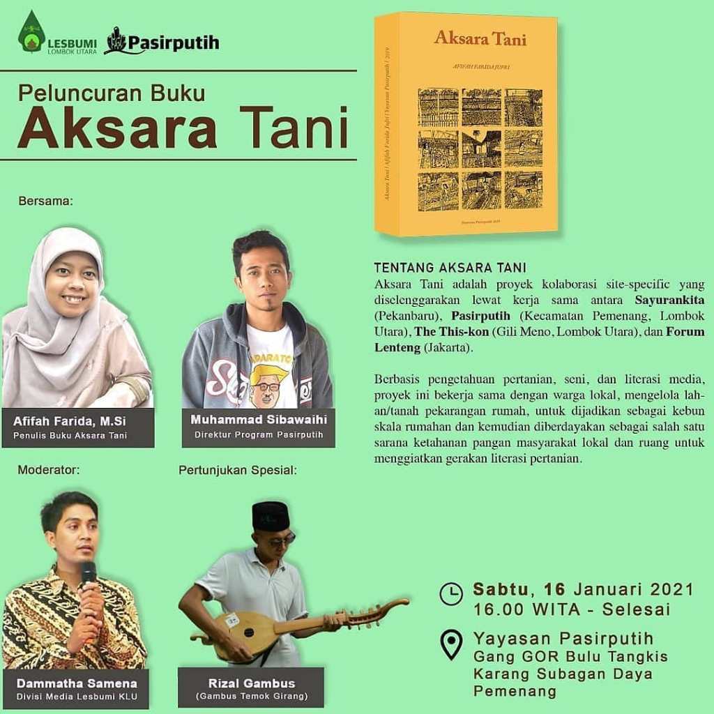 Sabtu, 16 Januari 2021, pukul 16.00 WITA – selesai, di kantor Yayasan Pasirputih, Kecamatan Pemenang, Lombok Utara.
